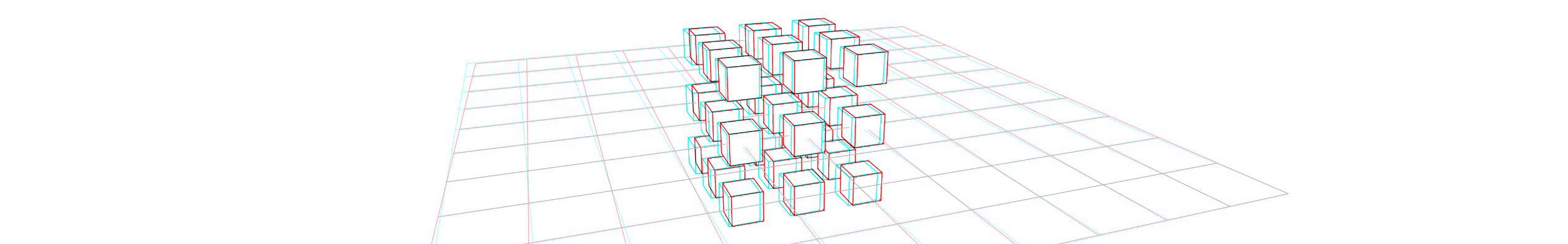 Aufgabe: Versuche, mit Hilfe von verschachtelten Schleifen ein Gitter aus 3x3x3 Würfeln zu bauen: