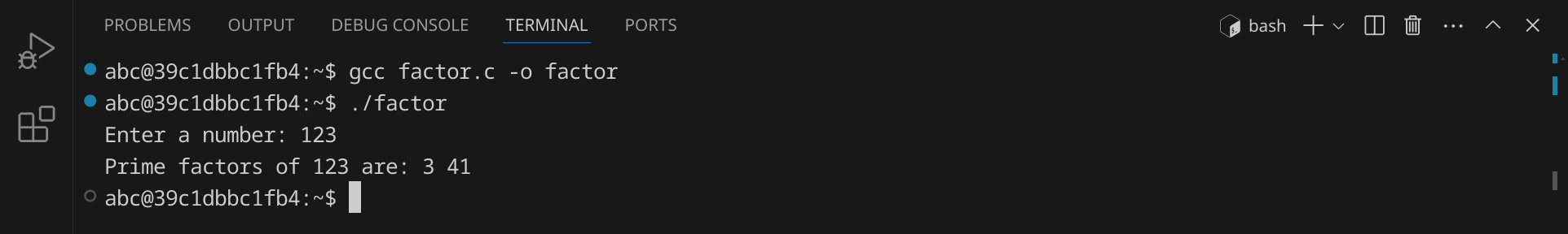 Speichere die Datei unter dem Namen factor.c. Kompiliere das Programm: