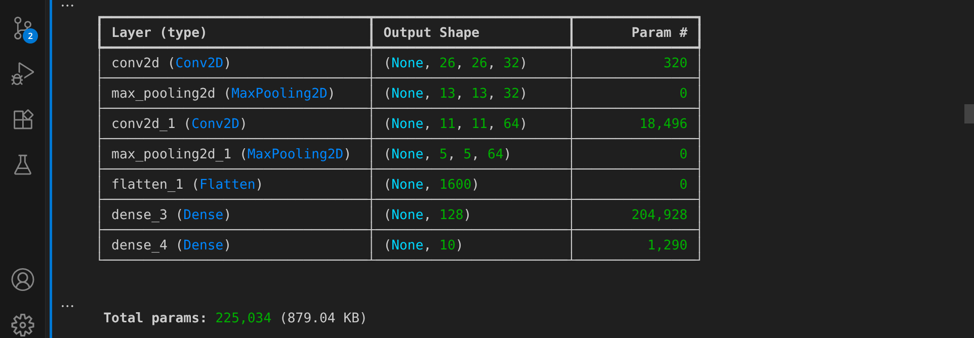 Das verbesserte Modell verfügt über eine Gesamtzahl von 225.034 Parametern, also ca. 2,5 mal so viele Parameter wie im vorherigen Modell: