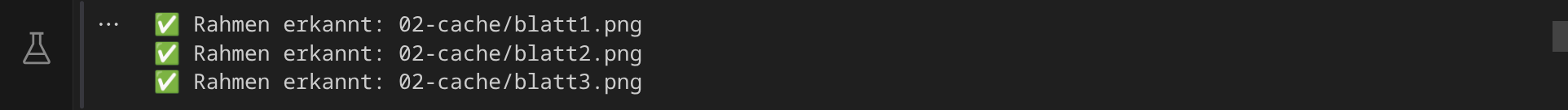 Wenn die Bilder korrekt angezeigt werden, führe den nächsten Codeblock aus. In diesem Schritt werden die gedruckten Rahmen in jeder Bilddatei gesucht: