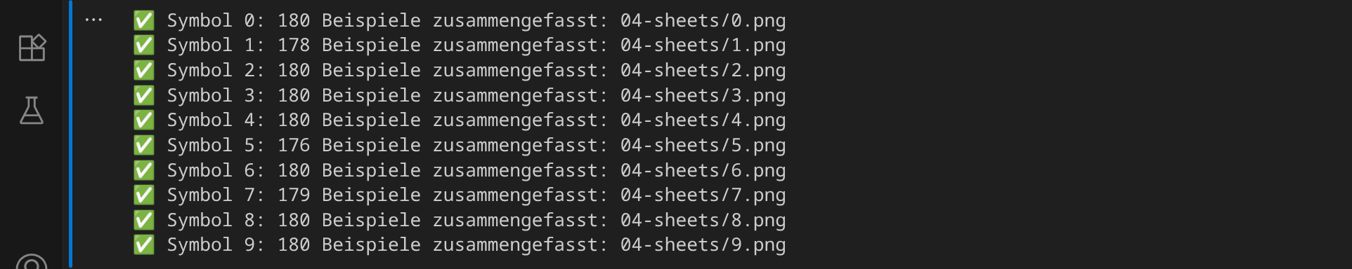 Im nächsten Schritt werden 10 Bilddateien generiert, in denen die einzelnen Ziffern gesammelt werden: