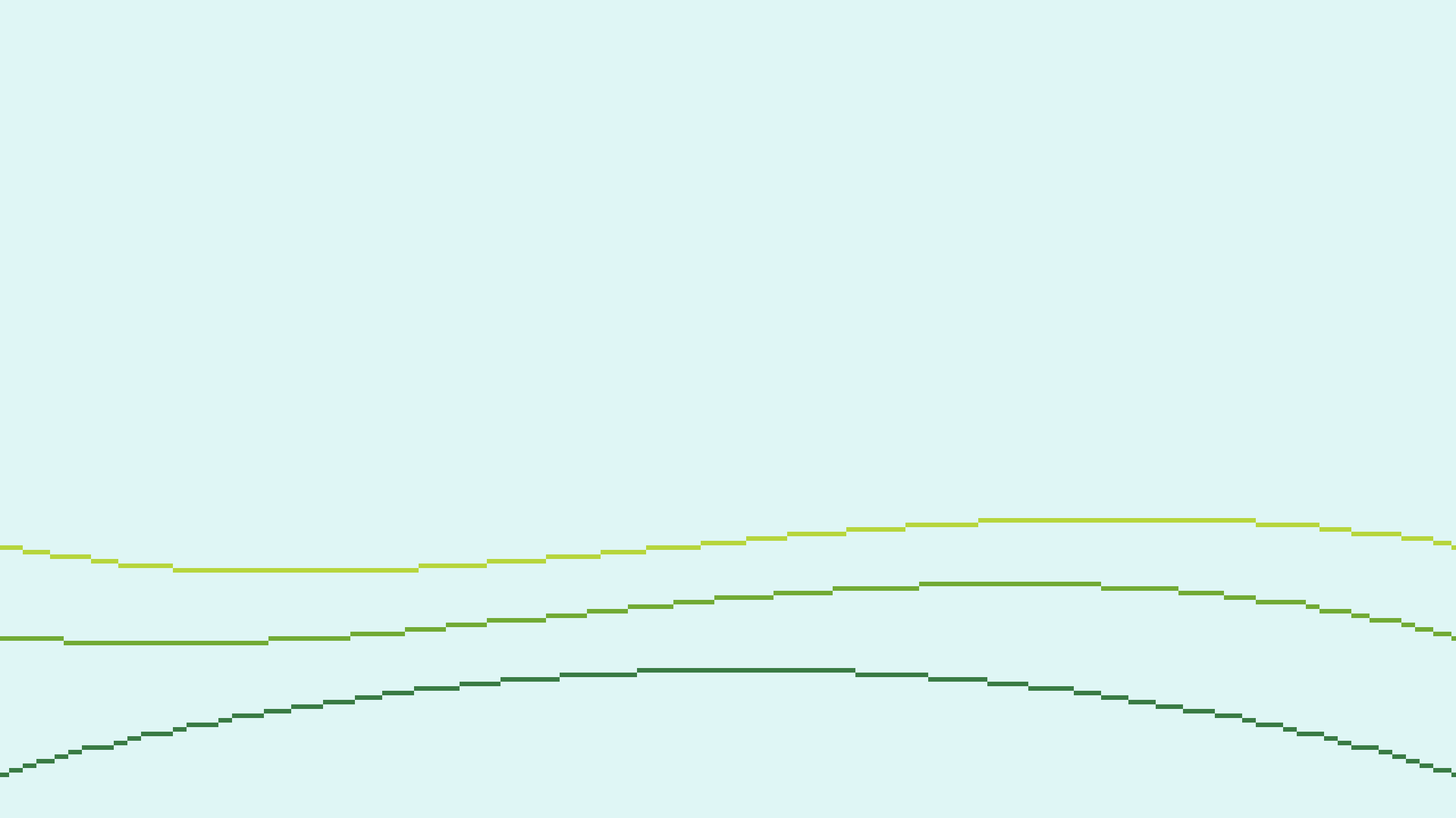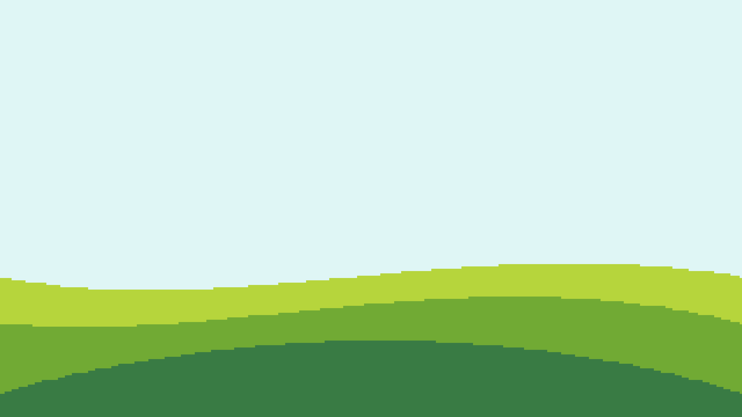 Wir können also z. B. eine kubische Bézierkurve verwenden, um eine hügelige Wiese zu zeichnen. Dabei sind der erste und der letzte Punkt die Endpunkte der Kurve, während die beiden mittleren Punkte die Kontrollpunkte sind, die die Form der Kurve beeinflussen. Wir zeichnen drei Kurven mit verschiedenen Grüntönen, um eine hügelige Wiese darzustellen. Füge den folgenden Code hinzu: