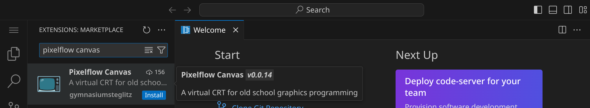 in der Seitenleiste und suche nach »Pixelflow Canvas«. Klicke auf »Install«, um die Erweiterung zu installieren.