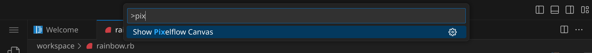 Bevor wir das Programm ausführen können, müssen wir das Pixelflow Canvas öffnen. Drücke dazu StrgShiftP oder F1 und gib dann »Show Pixelflow Canvas« ein.