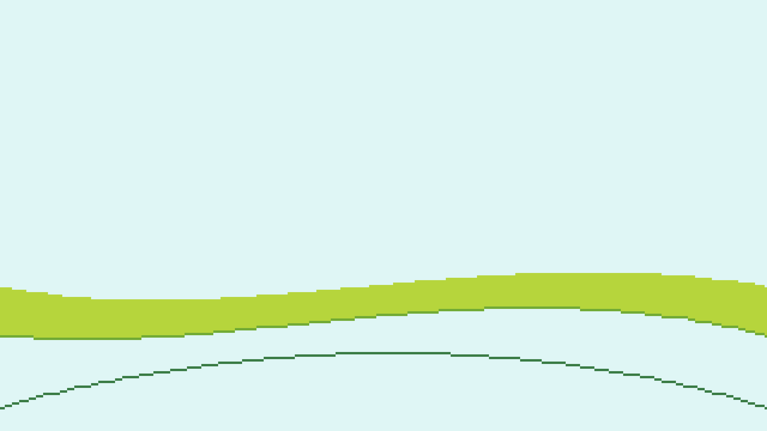 Der Punkt an der Stelle (0, 130) liegt zwischen den oberen beiden Kurven, und nun wird der Bereich zwischen diesen beiden Kurven mit der Farbe 7 (hellgrün) gefüllt. Dein Bild sollte danach so aussehen: