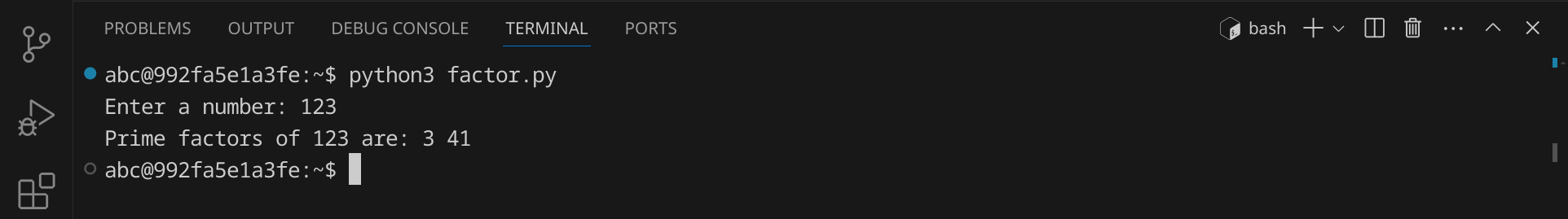 Speichere die Datei unter dem Namen factor.py und führe sie aus: