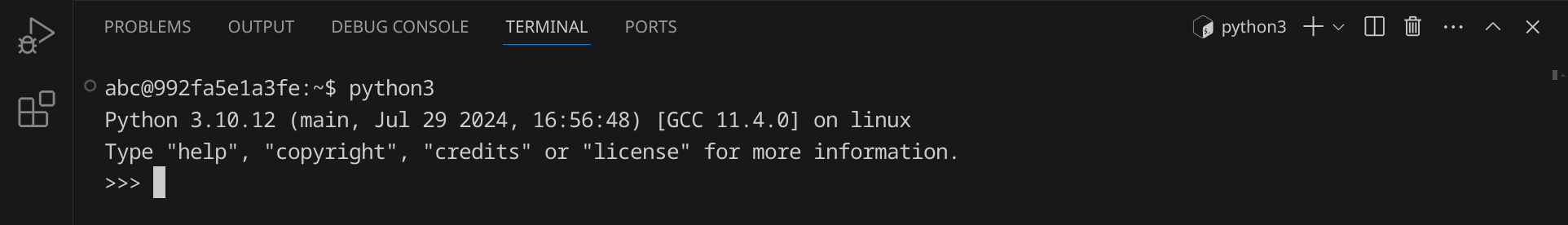 Starte nun die Python-Shell, indem du python3 eingibst und dann Enter drückst. Du solltest eine Ausgabe wie diese sehen: