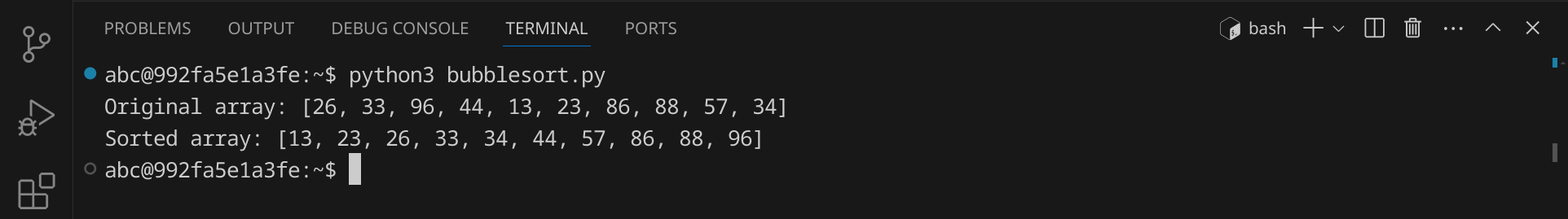 Speichere das Skript unter dem Namen bubblesort.py und führe es aus: