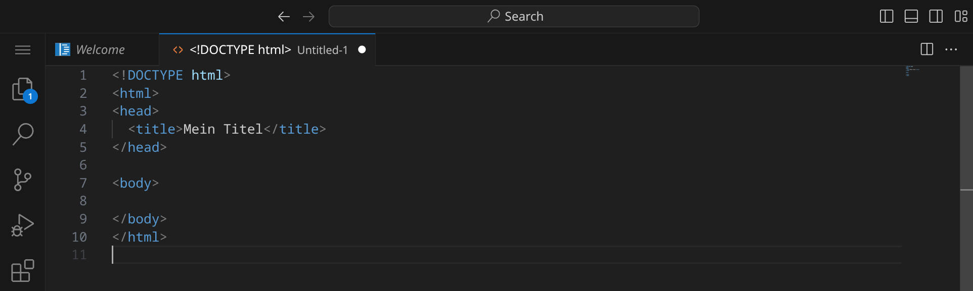 <!DOCTYPE html> <html> <head> <title>Mein Titel</title> </head> <body> </body> </html> |