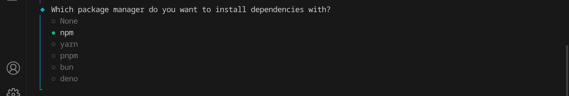 Als letztes wirst du gefragt, welchen Paketmanager du verwenden möchtest. Wähle hier »npm« aus, indem du Enter drückst:
