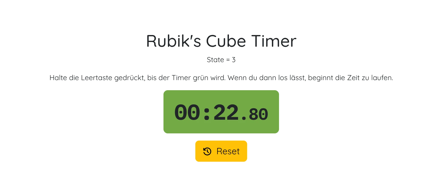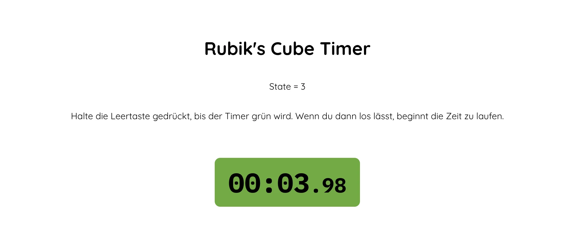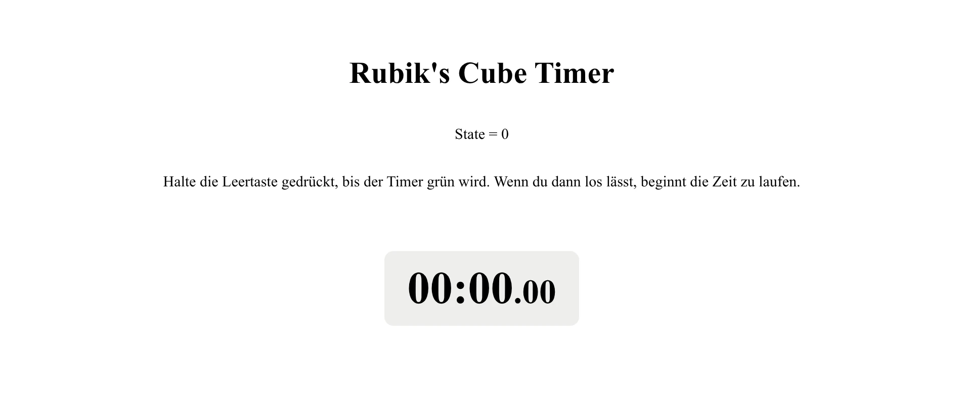 <p> Halte die Leertaste gedrückt, bis der Timer grün wird. Wenn du dann los lässt, beginnt die Zeit zu laufen. </p> <p class="timer">{@html timerString}</p>