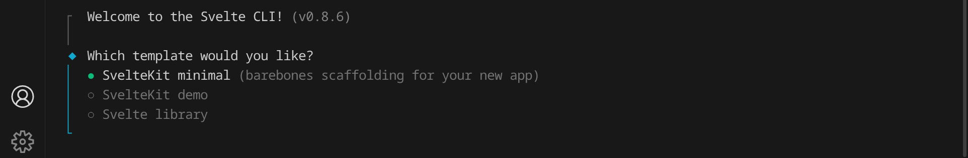 Um ein neues Svelte-Projekt zu erstellen, öffne ein Terminal und gib folgenden Befehl ein:
