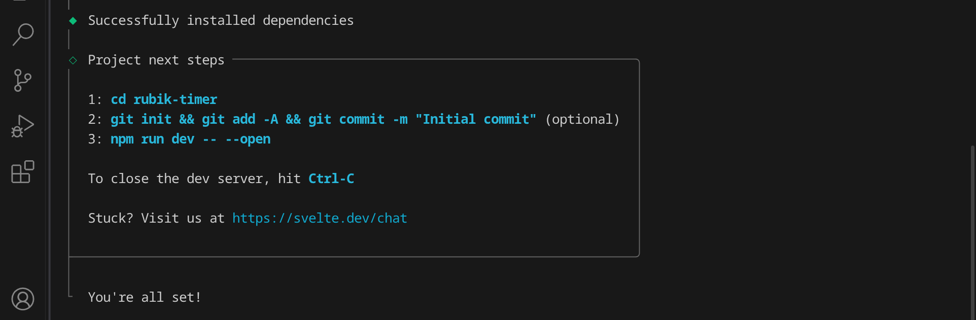 npx sv create rubik-timer